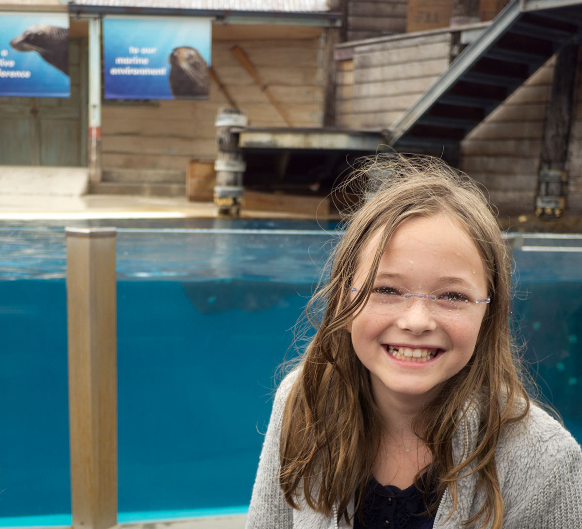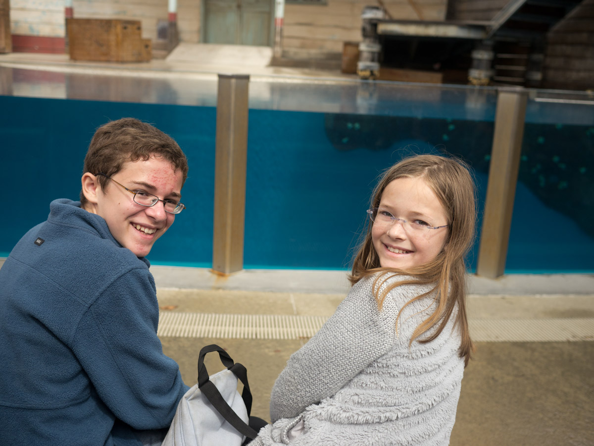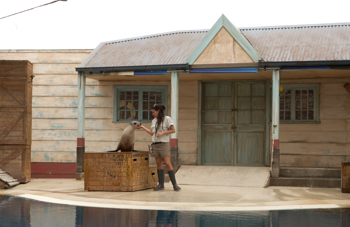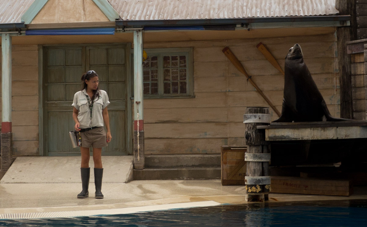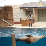 When the tour was over we had lunch then headed over to the seal show. We saw three seals do tricks and learned that it is a seal’s sensitive whiskers that allow it carry a ball on its nose. The last seal was a huge male named Michie. When Michie was done doing tricks the man who had been explaining everything asked for a volunteer. I raised my hand and he picked on me.