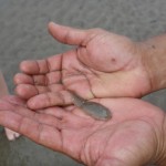 We splashed our way along. The sun was bright and the shallow water was warm and clear. Suddenly, Link stopped and squiggled his foot into a little puddle. He reached down and plucked out a tiny sand skipper fish. The man actually caught a fish with his bare foot! He let the kids take turns holding it while he scooped and poured handfuls of water to keep it safe. He was extremely gentle and respectful of this tiny creature no bigger than two inches long. It was a powerful and wordless lesson.