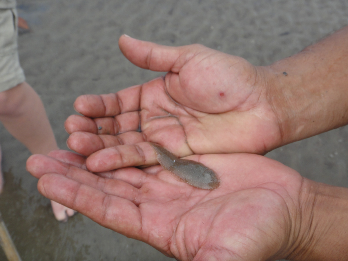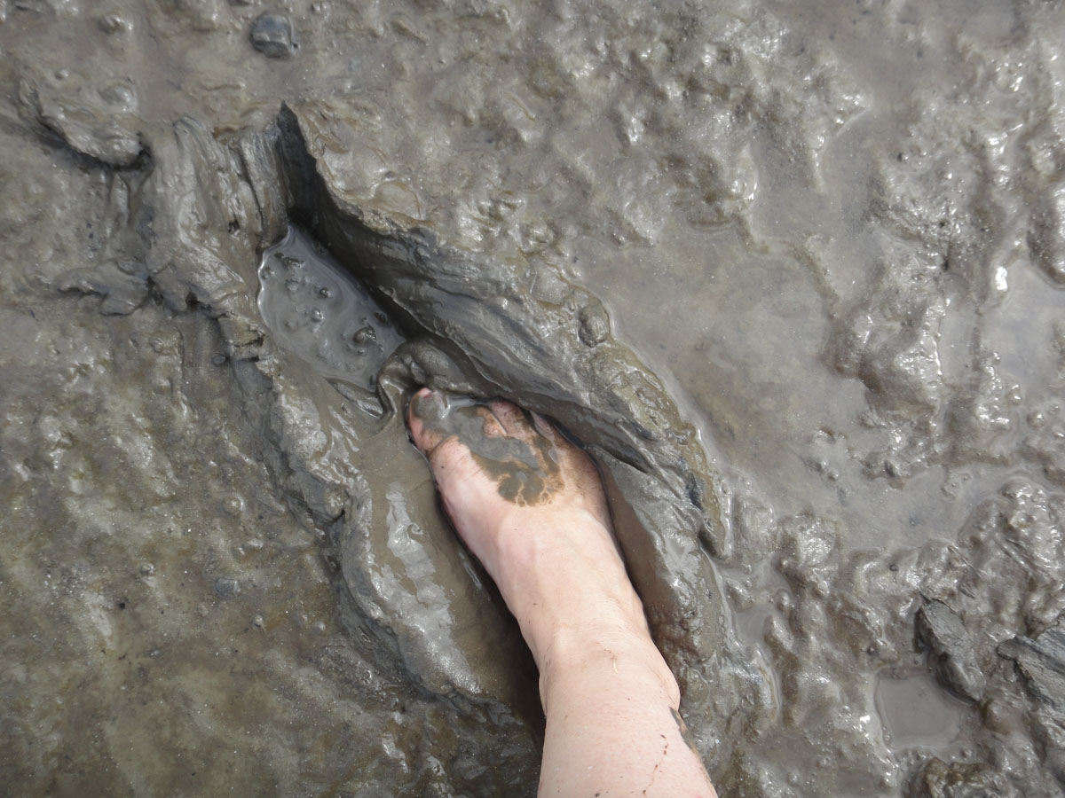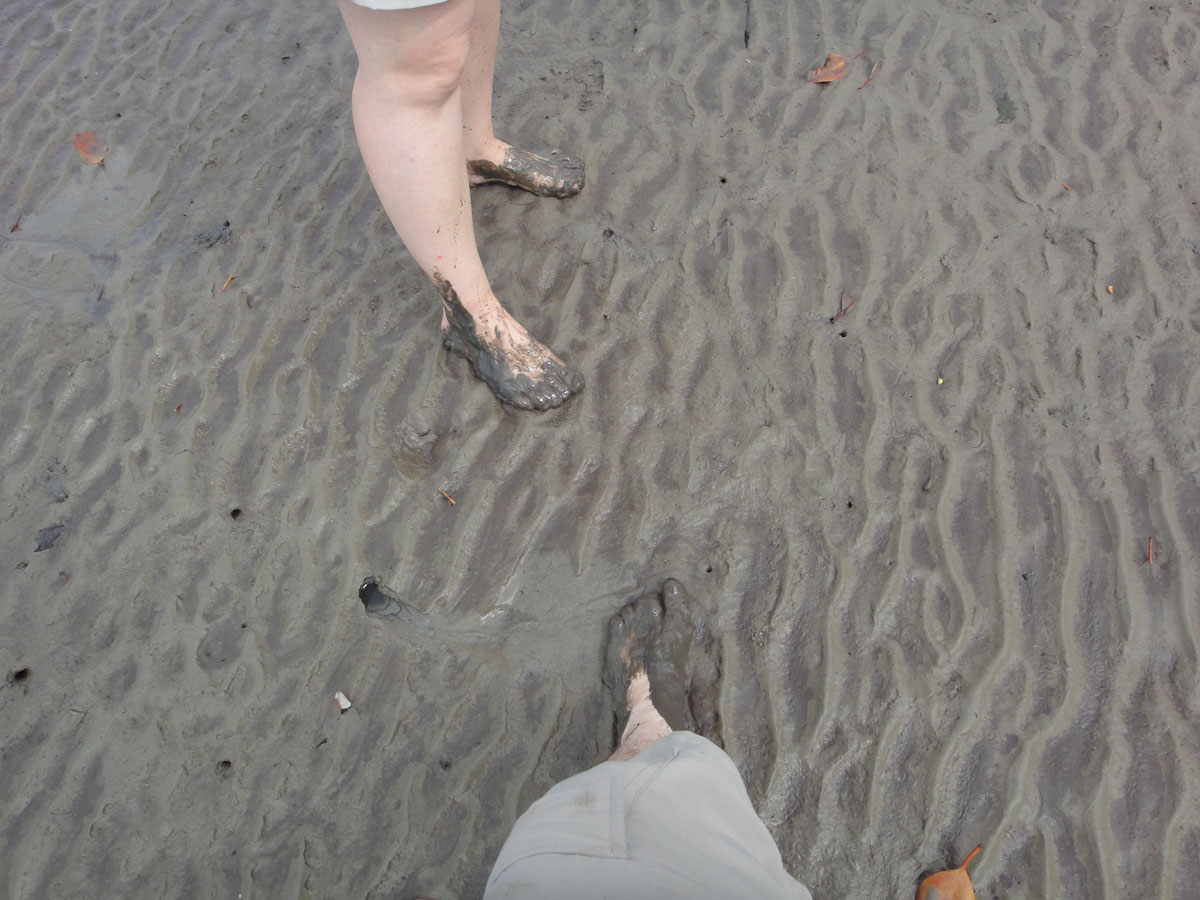 We walked a little further and he pointed out the hundreds of sand tube worms we passed. About as thick as a strand of yarn, these creatures stay anchored in their holes and stretch out quite far in search of food. When you poke them, they disappear quick as lightening down their holes. The movie “Dune” flashed before my clenched eyes; I desperately tried not to think about what else was passing through my toes as I gingerly squelched my way across the flats.