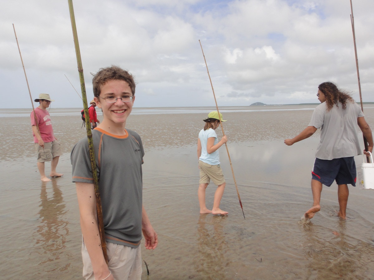 I looked over and saw the kids thrusting their spears into every tidal puddle. We would be feasting soon: they had helped corner three huge and very angry male crabs, entirely undeterred by the ominous clicking of pinchers and beady eyes that followed our every move.