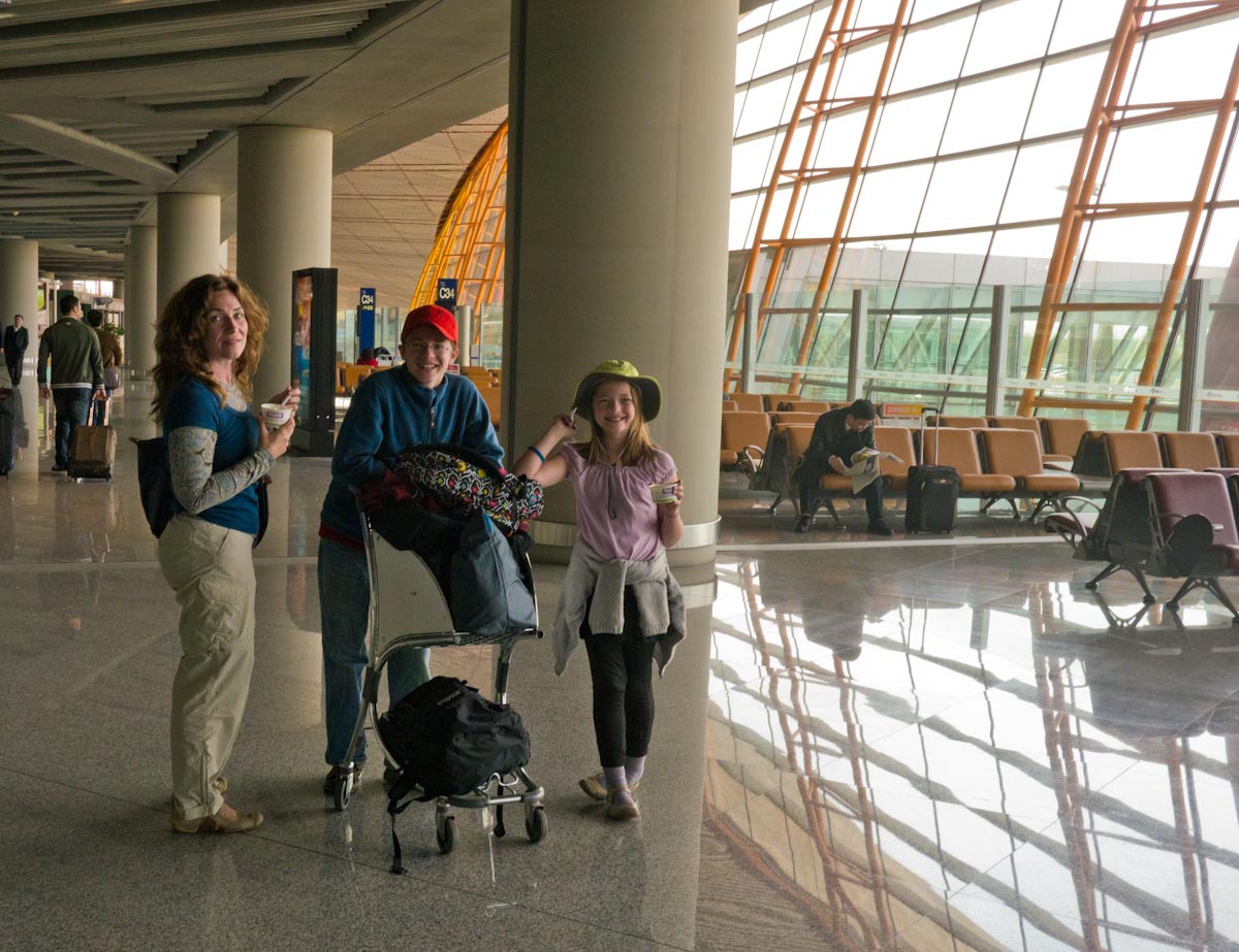 We also visited a Beijing corner market in the hutong. It reminded us of many of the markets we had seen throughout Southeast Asia. There were a few novel produce items – eggplants here are round and tastier than back home, new root vegetables that looked like grubs – and it all looked quite fresh. The Chinese apparently got used to eating in food halls during the Cultural Revolution and so they are still quite accustomed to stopping into restaurants for cheap meals, but our guide John knew how to cook and invited us to his apartment for dinner later that night. (It was great – more on that later)