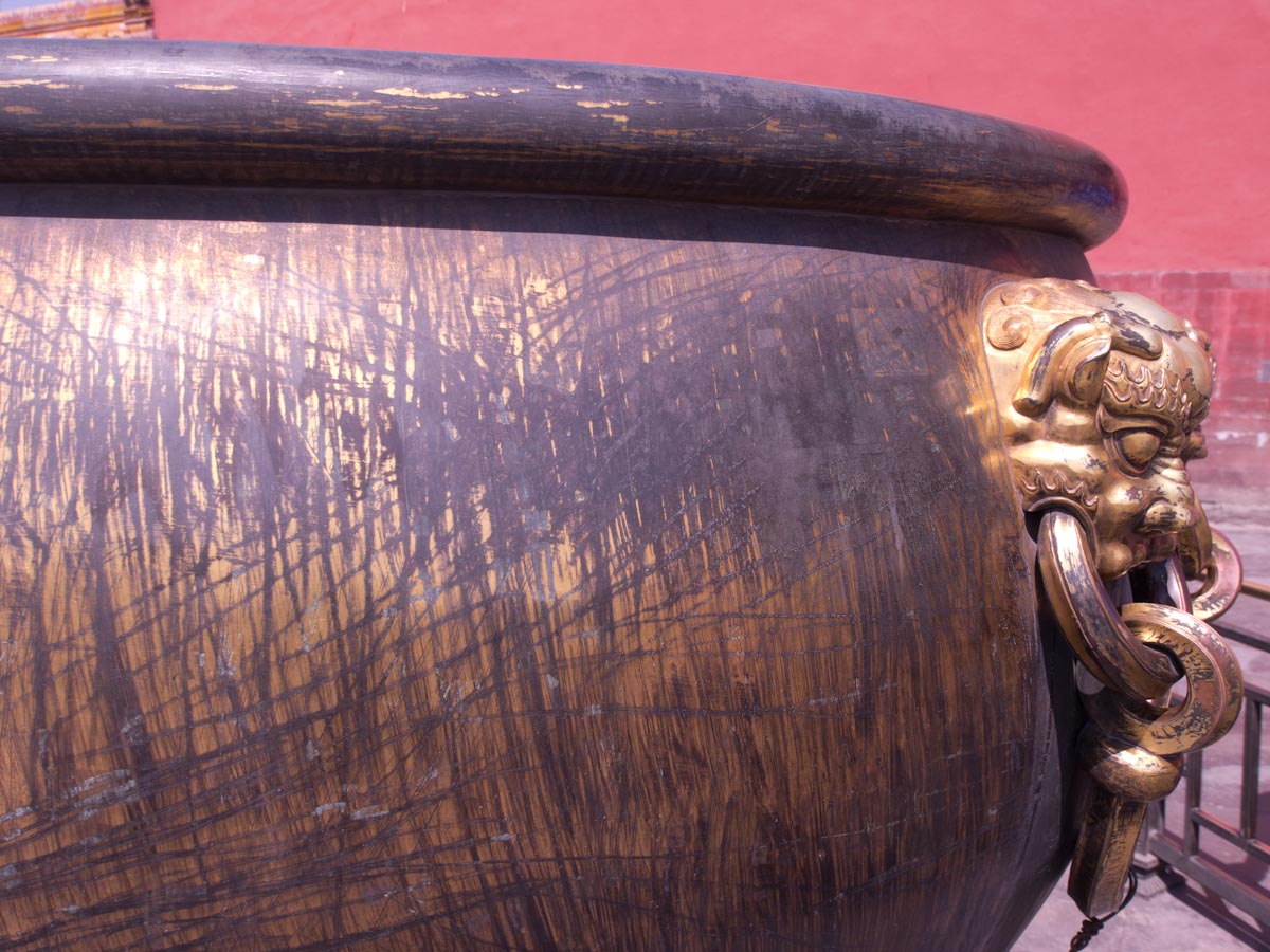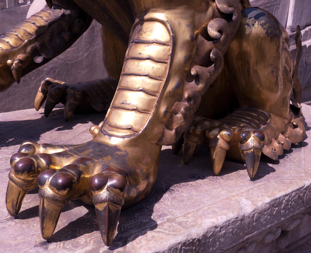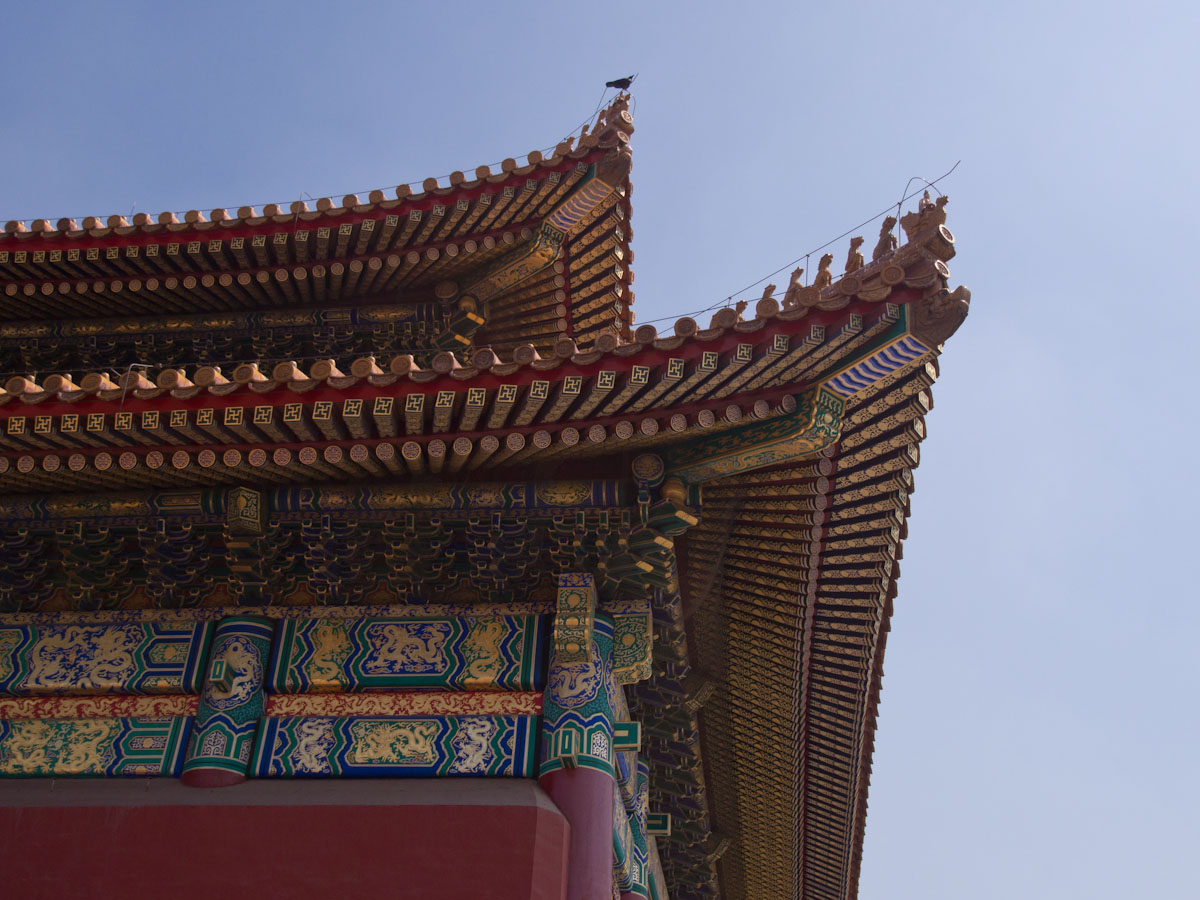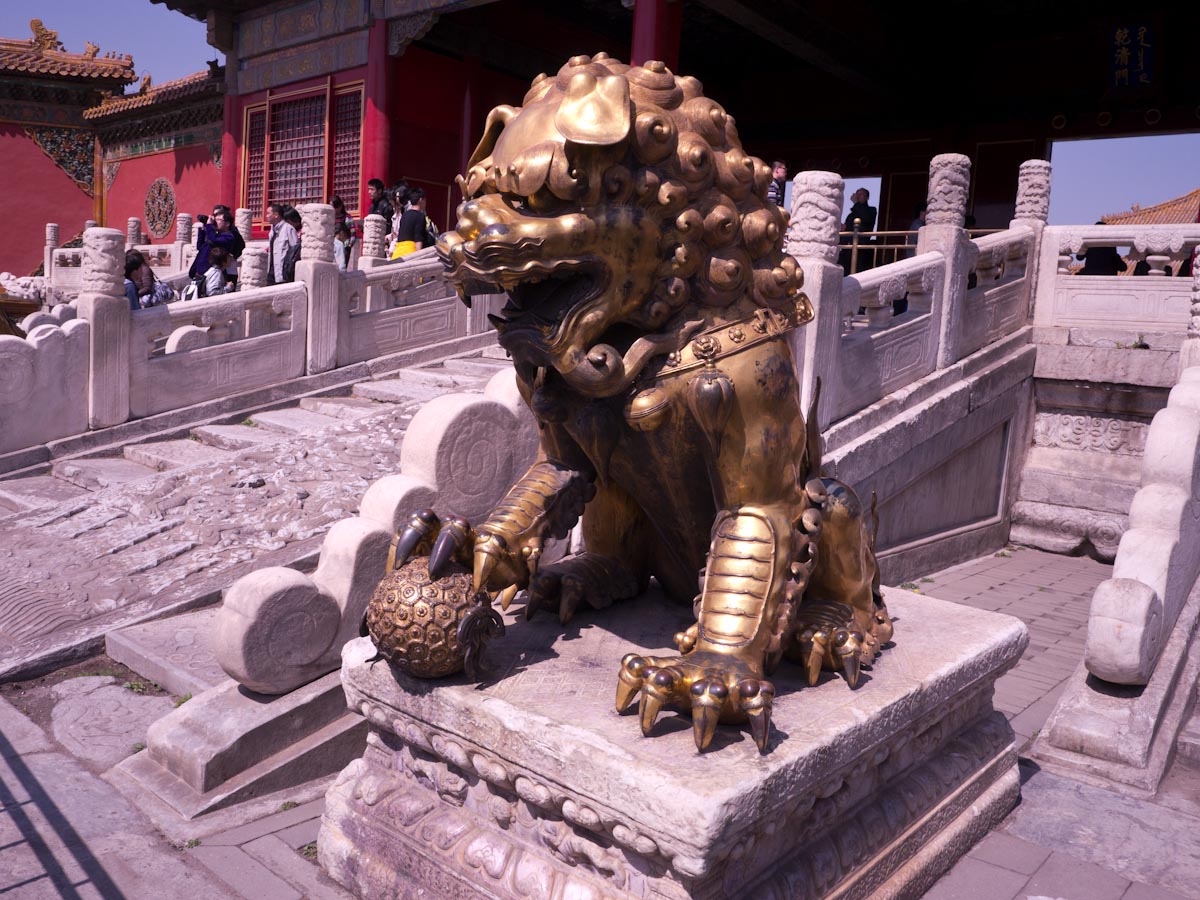 Like many palaces, the Forbidden City is laid out in a series of courtyards and grand halls that become progressively smaller and more private as one heads deeper inside. The spaces are vast and there are mythical creatures of many types spread throughout. At the back you can also find large collections of clocks (gifts of foreign powers) and enormous carved jades.