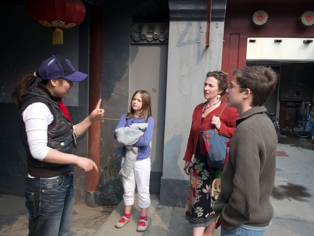 We visited the gateway of one of the few remaining single-family courtyards. The guide showed us the 4 posts across the top, which indicated a noble family in old times. The posts indicated the width of the door. The emperor was permitted 12 posts in his gate, nobles 4, lesser ranks 2, and the rest could have 1 or 0. Katherine asked ‘What if you were a merchant who wanted to build a gate with 4 posts?” The guide could not understand the question. “No 4 posts for merchant.” “But what if the merchant did it anyway?” “No 4 posts for merchant.” We asked until the guide understood. “What if a CRAZY merchant did that?” “Merchant killed! No 4 posts for merchant.”