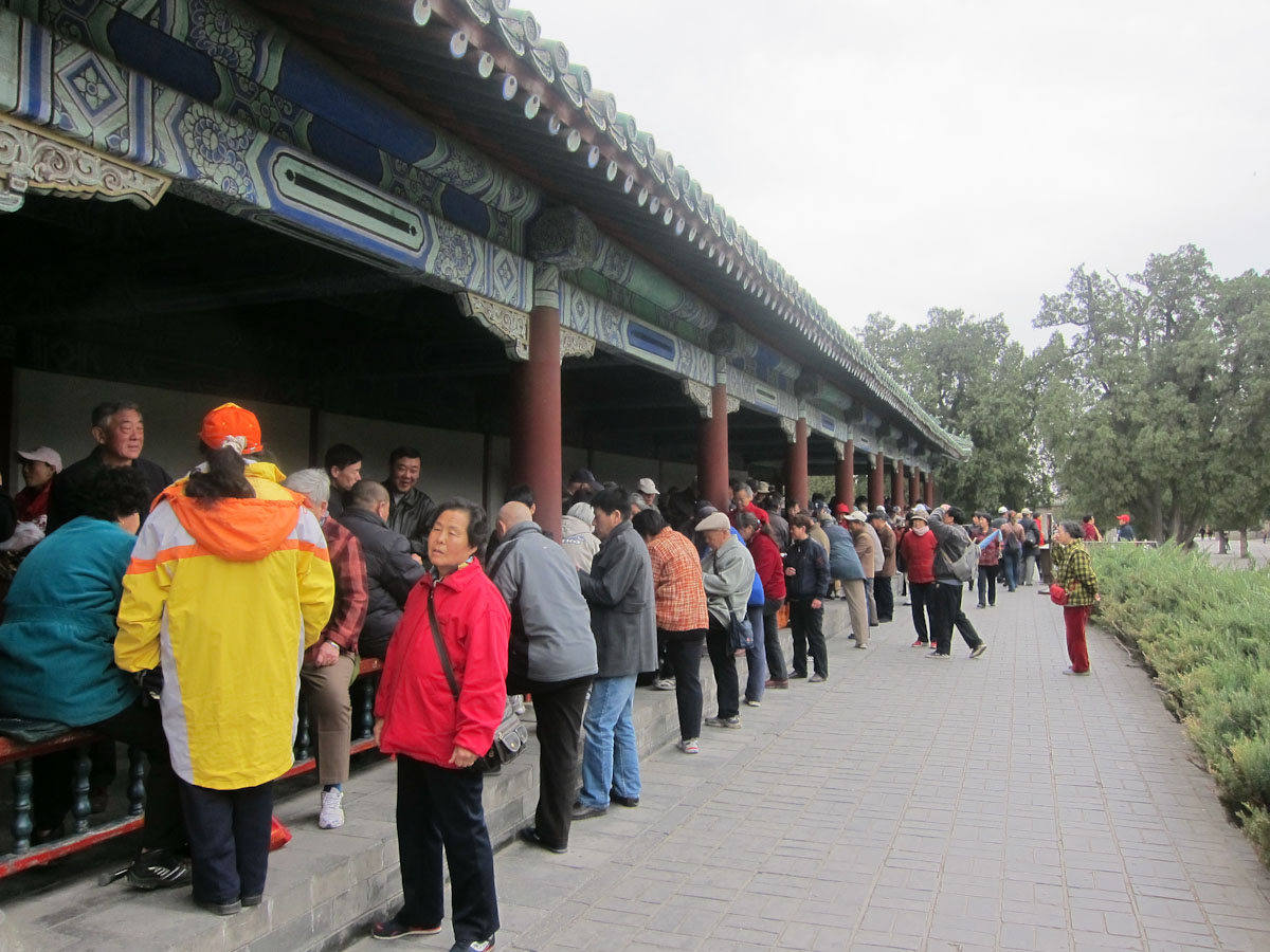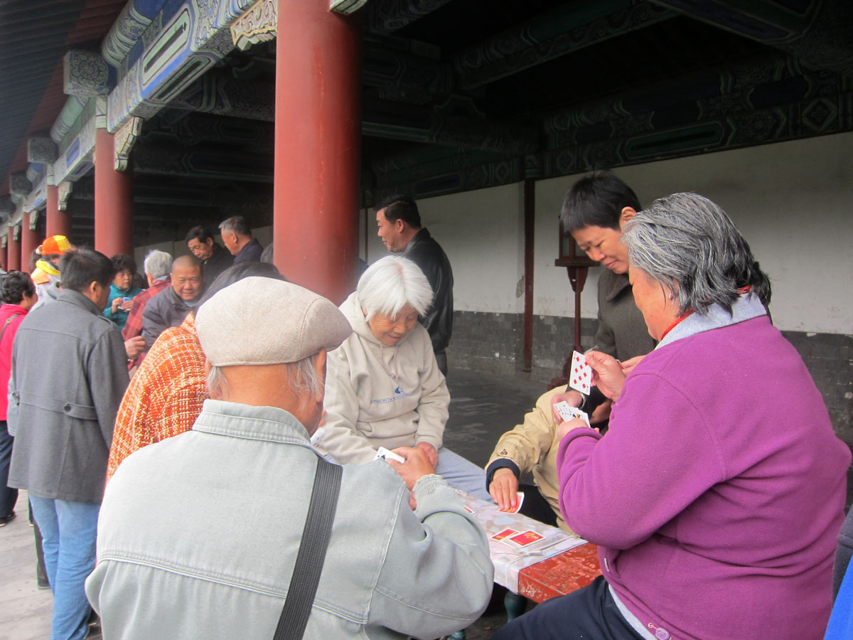 On our last day in Beijing, we went to the Temple of Heaven, where the Emperor came to pray. There was a special buildings for the winter solstice and a large set of parks with old cedar trees and a long hall. Today the hall is filled on a weekday by the elderly, enjoying their retirement with cards, dancing, Tai Chi, choral groups and gardens. We drank it all in and enjoyed this insight into modern Beijing. Then we headed out for the airport and a flight to magical Xi’an, the ancient original capital of China.
