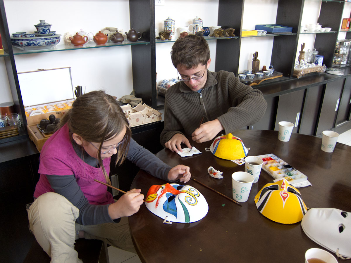 Did you know Chinese opera singers paint their faces so they look like characters? They learn to paint theri face by practicing on paper masks. We took a class with an opera master from the Beijing Opera to learn about this and then he taught us to sing a bit of Chinese Opera.