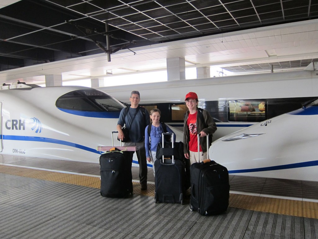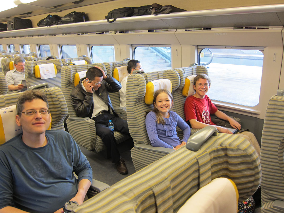Everything in China seems to be new and improved, or at least improving. Transportation is no exception. This particular train is less than a year old and has slashed the 400 km journey between these two large cities to just under 1 ½ hours. If we were able to ride it between Boston and New York, the journey would require only 65 minutes, imagine!