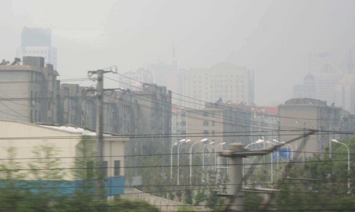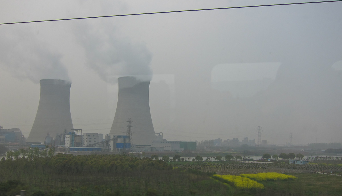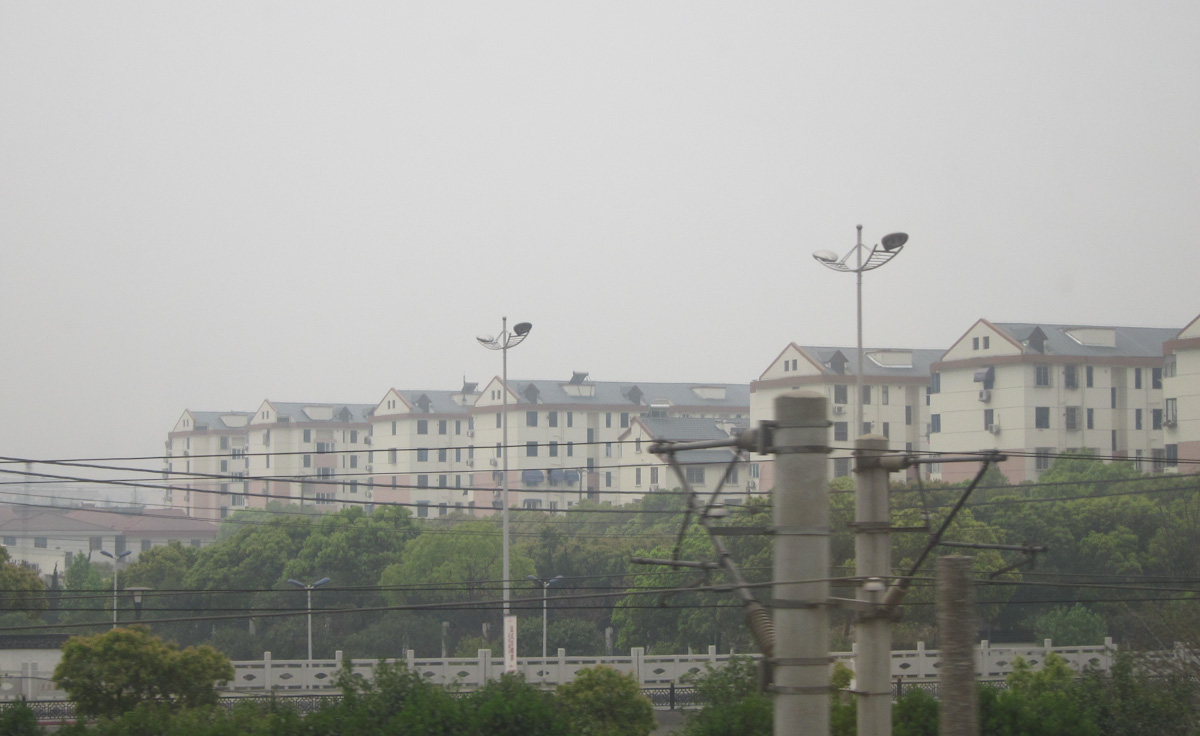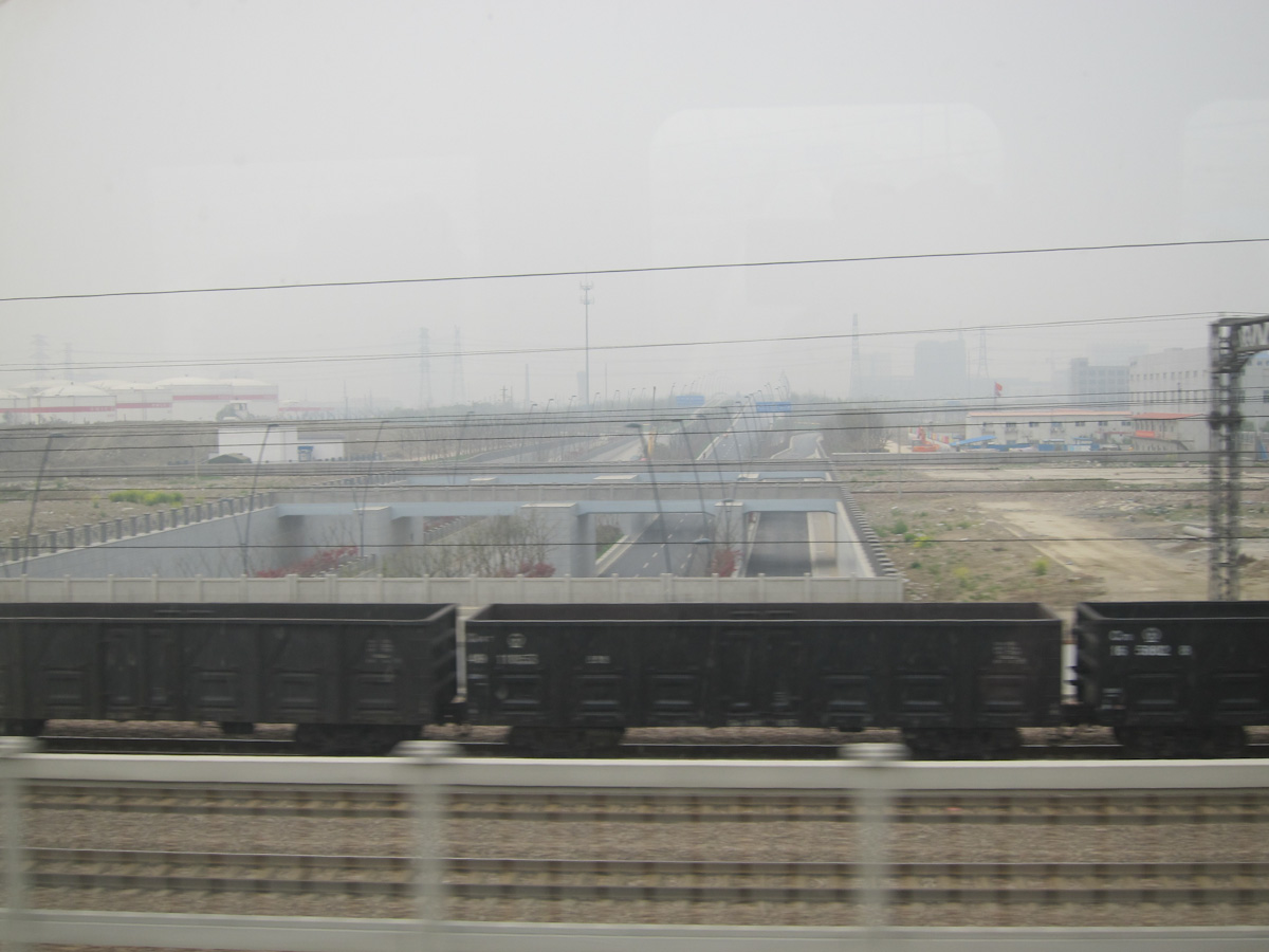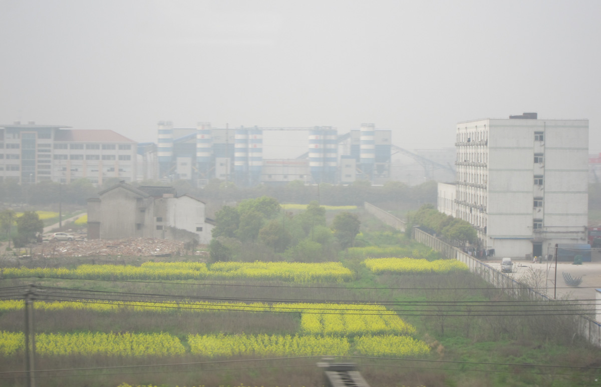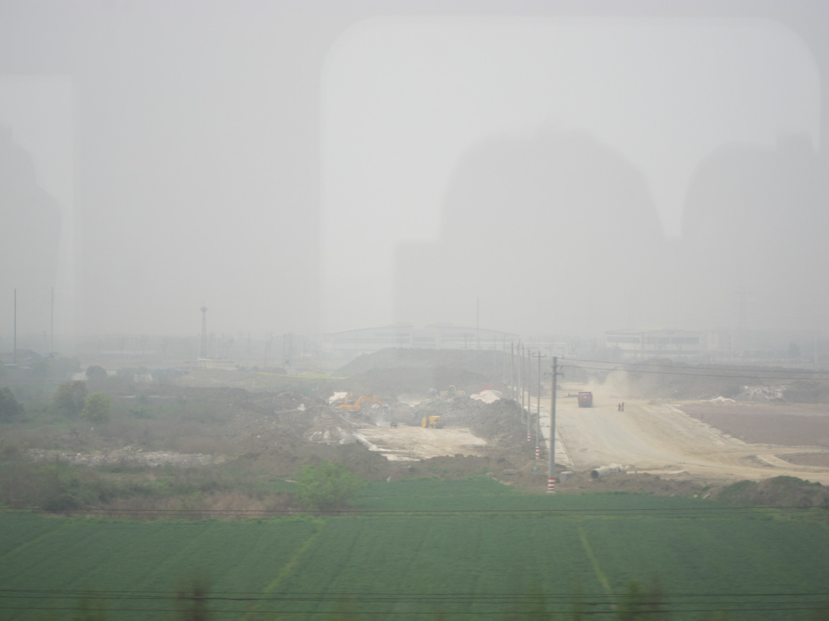 We settled in to watch the countryside of China on fast forward, but our hopes were foiled by a thick haze. We had seen this white smog elsewhere in China. It is not fog because it is not wet – if you ask the locals what it is they say “we don’t know”. The industrial hinterlands between Nanjing and Shanghai had the worst yet. Passing the many power plants and smokestacks, it was easy to see why.