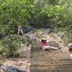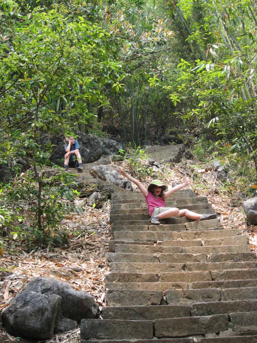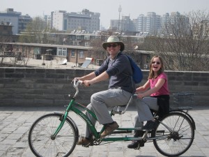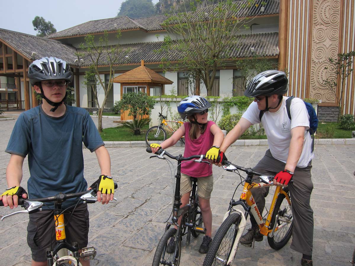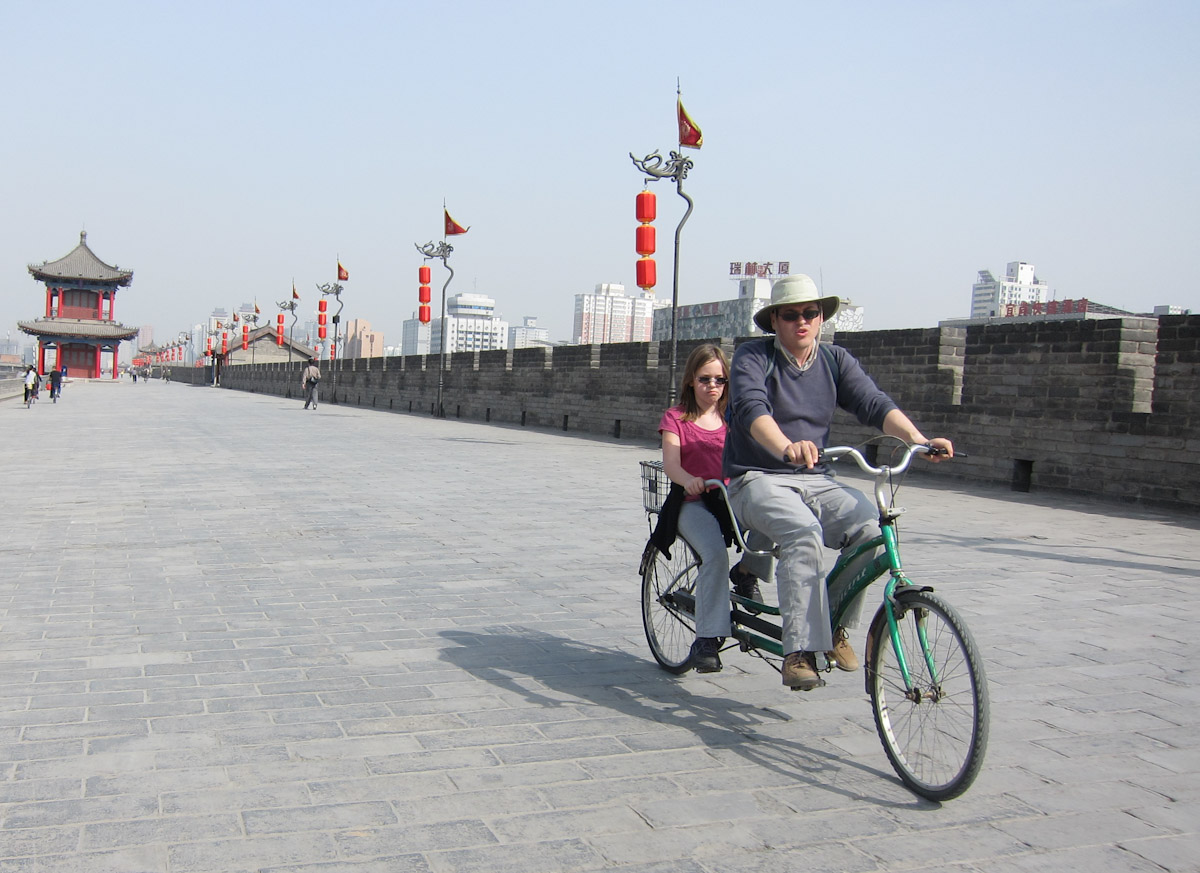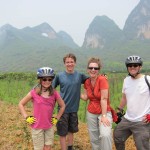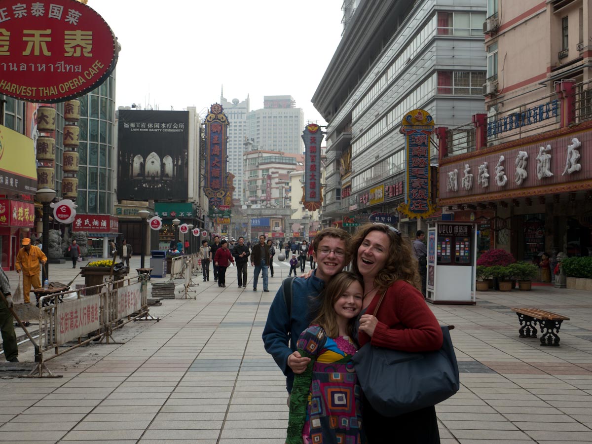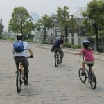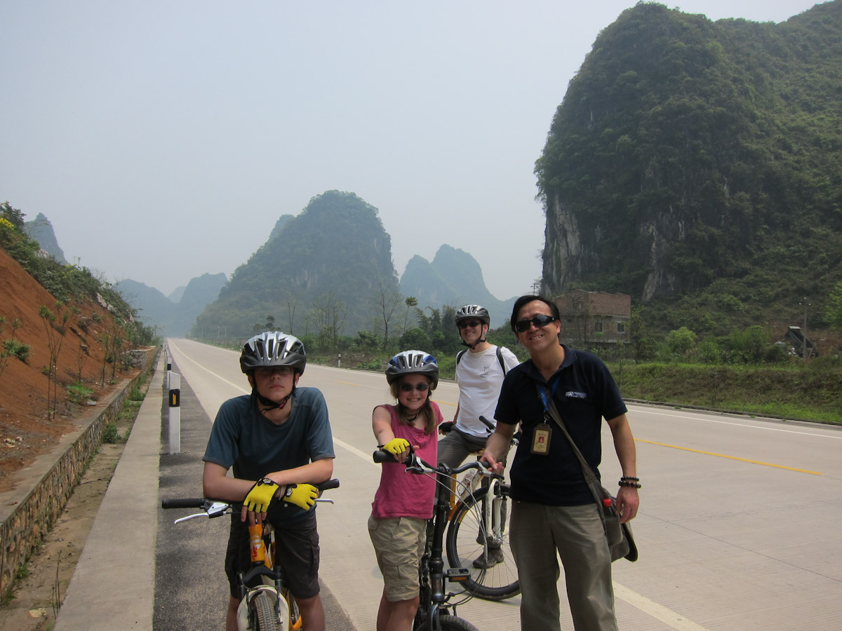 The first stop Xi’an was the original capital of China and is the home of the Terracotta Warriors, a variety of tasty local restaurants and a superb calligraphy school, all described elsewhere. Here we visited the Xi’an Museum to see excellent early pottery, bronzes and sculpture. In Xi’an we could also spend an afternoon tandem-bicycling on top of the old city walls, a 14km circuit around the old town. It was all family fun, until Gina and Carter started to cycle ahead of Katherine and me. “It’s not a race!” we complained. They appeared not to hear and just kept peddling. We looked at each other and worked harder. “It’s not a race!” we cried again. Gina just laughed at us. This would not do; we peddled madly! We built up so much momentum that we dashed past as if they were still. Their jaws dropped open. “It’s not a race… that YOU’RE LOSING!” screamed Katherine over her shoulder. We left them in the dust for the next half hour or so, but the situation changed when we all stopped for a rest break. Gina and Carter left suddenly, piling up a big head start! Katherine and I laboriously caught up and overtook them just 100 meters ahead of the finish line, but with a desperate sprint they recovered and held on to the end. -- After two big cities, it was time for nature. We flew to Guilin and drove to reach rural Yongshuo, a town that has been set aside for nature and tourism – no factories allowed. The Guilin region was once the bottom of an ocean bed, covered in limestone built up from millennia of dead ocean life. When finally exposed to air, the rain eroded all but the purest stone away. What remains are famous Kharst mountains – sudden vertical thrusts of green-covered hills that have inspired countless generations of Chinese artists. The best way to see Yangshuo is to bicycle through the local villages and fields on dirt paths. Our guide Moe took us through. The air was punctuated with the bang! pop-pop-popping sound of firecrackers. It turned out the village was belatedly celebrating tomb-sweeping day, the day when everyone goes back to the tombs of their ancestors to leave offerings and pray for their assistance in the year to come. After leaving a chicken and some symbolic paper money or objects and placing a red flag by the tomb, the villagers set off firecrackers to scare away the demons who would otherwise steal the offerings. Then they parade on to the next ancestor tomb. The tombs of the farmers are usually built of rock and located right at the edge of the field or placed mid-way up on a Karst hill. Decades of Communism may have essentially eradicated organized religion from China, but it could not dislodge this deeply important practice in the rural areas. We had a bit of a scare when Katherine was gazing at the hills and rode right off the dirt path into a farmer’s field where she was unceremoniously dumped off her bike. Luckily she was only scratched up and did not land in the giant pile of manure a few feet away! The ride brought us to Moon Hill, a startling formation that bends over to form an open bridge high in the sky. We completed the 800-step climb with pride only to be humbled to find rock climbers ascending the nearly vertical rocky face of the bridge itself. The other things to see in Guilin are the colorful but touristy streets of Yangshuo and the superbly clear Li River – where you can watch cormorant fishing or take a raft boat ride. All are described elsewhere. -- Nanjing was also once a capital of China. It is smaller and more approachable at 8 million people than Beijing or Shanghai, both 20-25+ million. Out of 280 people on the late-evening flight from Guilin, we were the only Westerners. We had chosen to come here because Nanjing has the largest airport near the E Ink factory. The other foreigners at our hotel all appeared to be businesspeople. Luckily, we connected with an excellent guide named Lily. She brought us round two major sites – Dr. Sun’s Mausoleum (see Katherine’s blog) and the old town center featuring a superb Confucian Temple. Lily knew the history of China so well that we sat enthralled as she brought us through story after story.Dr. Sun’s mausoleum was not just about the 1911 revolution. Here you will also find 2 giant bronze urns, with bullet holes. These are solemn reminders of the Japanese occupation of China and the “Rape of Nanjing.” I watched as a grandmother and mother showed the urn to their baby. There is plenty of anger remaining here still today.