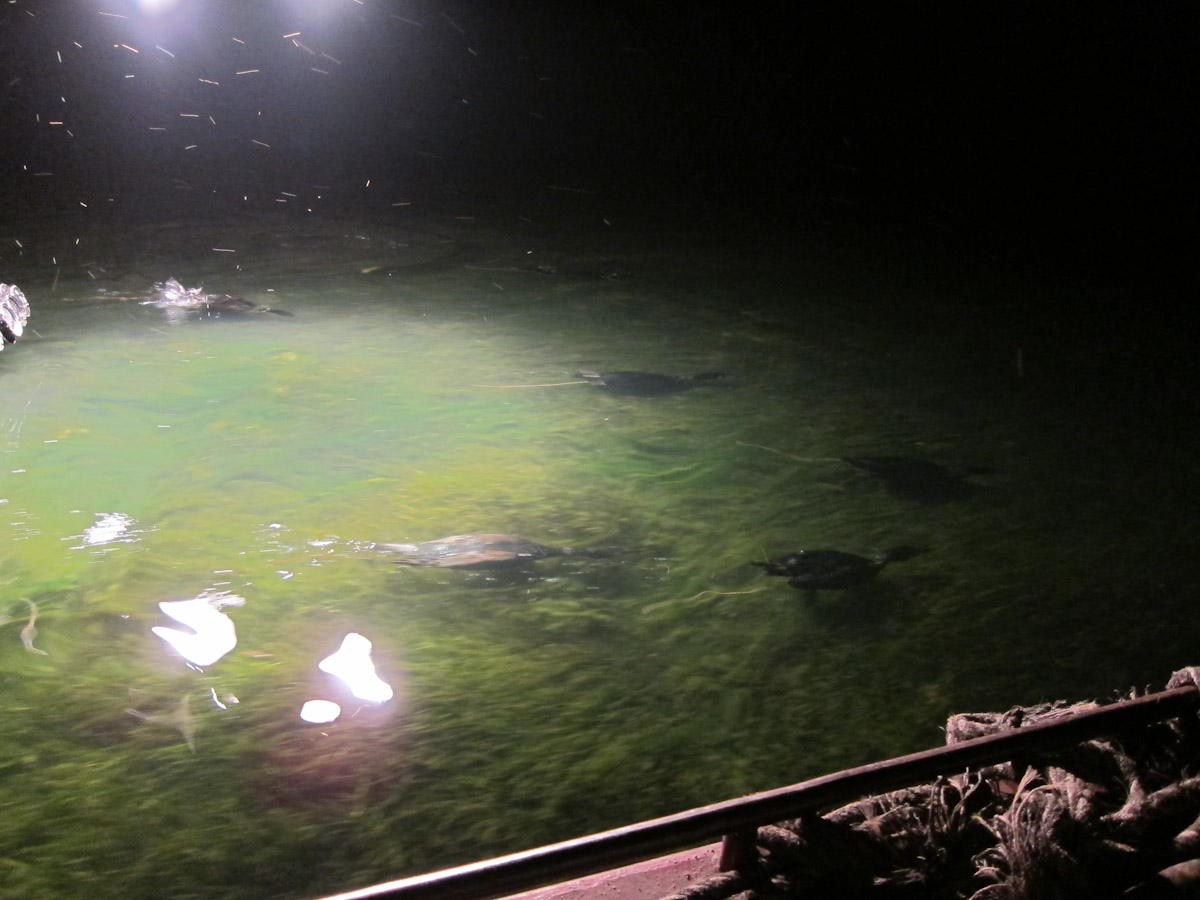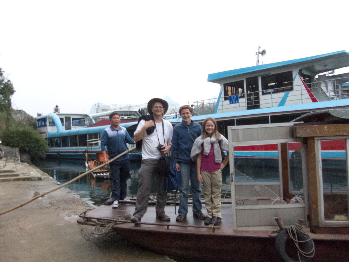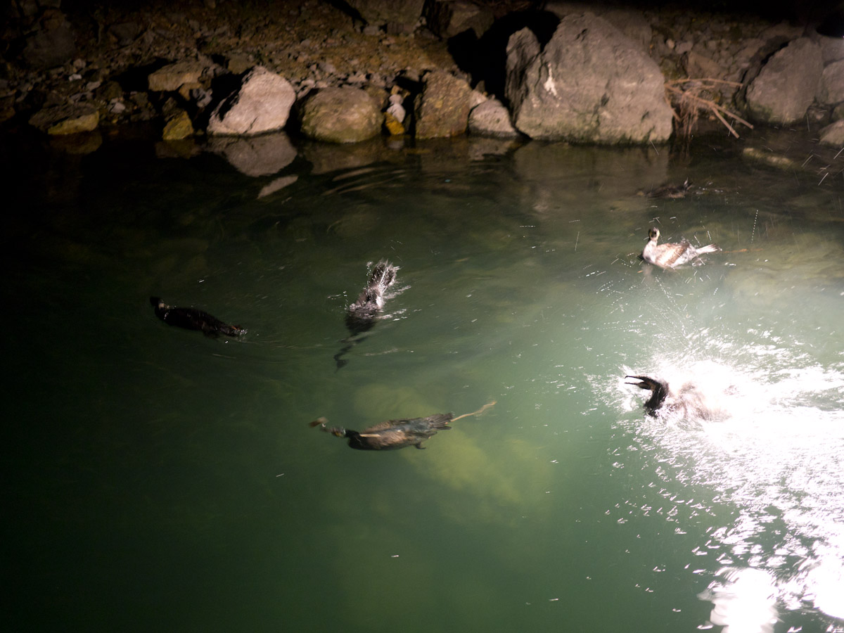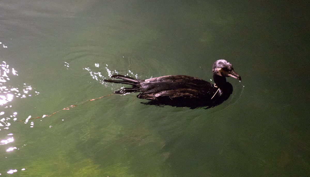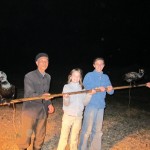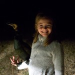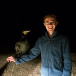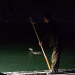 It was around 8:00 pm when we got in the boat and sailed alongside the fishing boat/raft. The fisherman turned a light hanging over a patch of water on to attract the fish. A lot like an angler fish. The birds dived in and swam around with blinding speed. One bird kept tugging on his fellow birds’ ropes. How mean! When the birds were idle or misbehaving the fisherman hit them with his stick. Also how mean! After a while they still hadn’t brought anything up. “I think the fish are so small they can swallow them.” Carter said. I agreed. Just then the fisherman said he’d lost a bird. I vaguely remembered that one bird kept going ahead and figured it was him. Finally the bird was found and we docked a small island covered in green slime. We got off the boat and the fisherman brought both the birds and a big basket over. He took a bird by the neck and forced its mouth open. Six fish fell out and into the basket. We gasped, I had thought they swallowed the fish but really they were just sitting in their throats! When all the throats were empty Carter and I got to hold the bird. They were wet and shook themselves on us but I liked them and petted their backs. Then he tied one of the bird’s foot to one side of his pole. And likewise for the other side. Carter and I held the middle and Dad took a picture. While that happened all the other birds ate the fish in the basket and had to be emptied again. We thanked the fisherman and he went off to do more fishing while we headed back, the cool wind blowing in our faces.