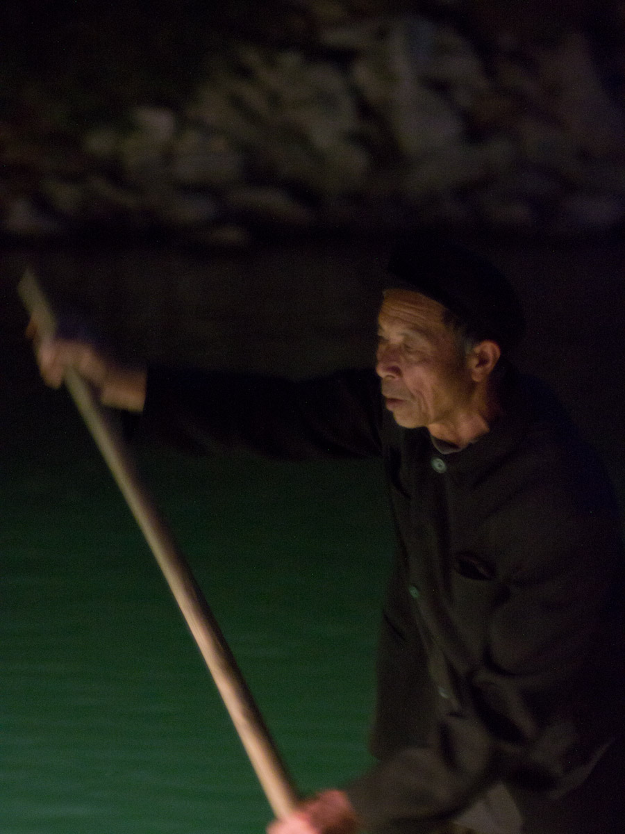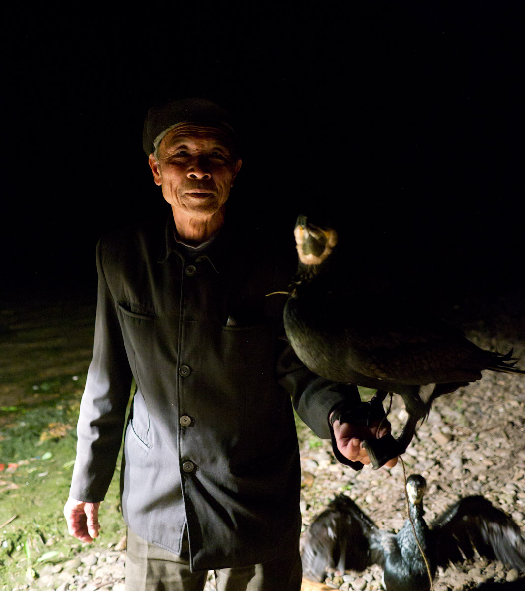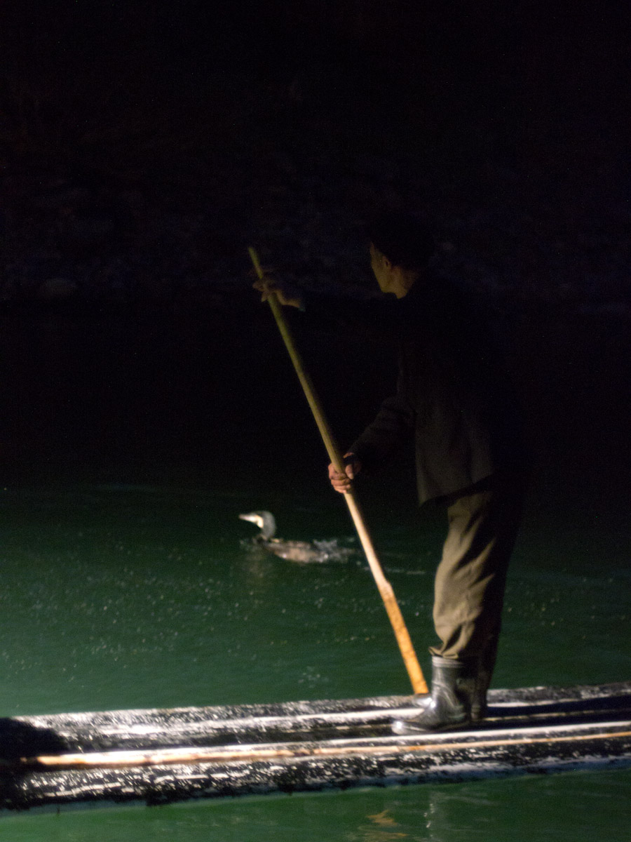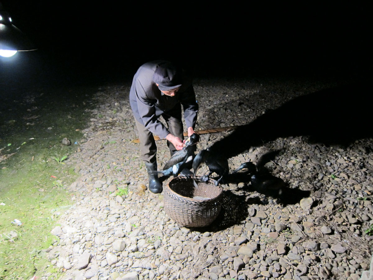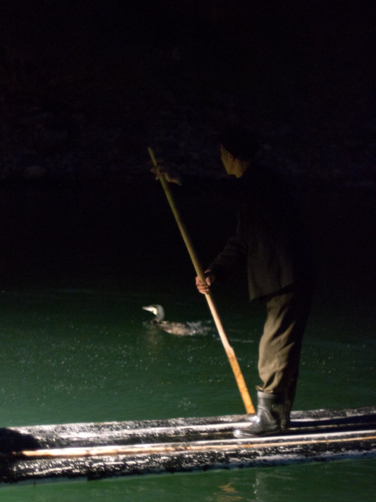 We sailed up the river just as the sun dropped over the horizon. Our destination? A secluded stretch of water. Our goal? To fish with Cormorants. A Cormorant is a duck-like bird that excels at finding and catching fish. The fisherman ties a rope around their neck so they can’t swallow the fish though.