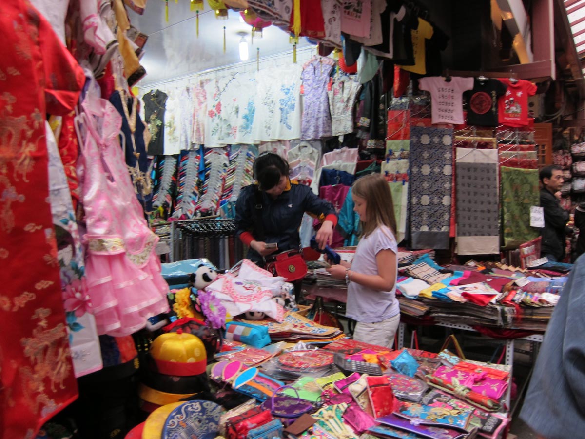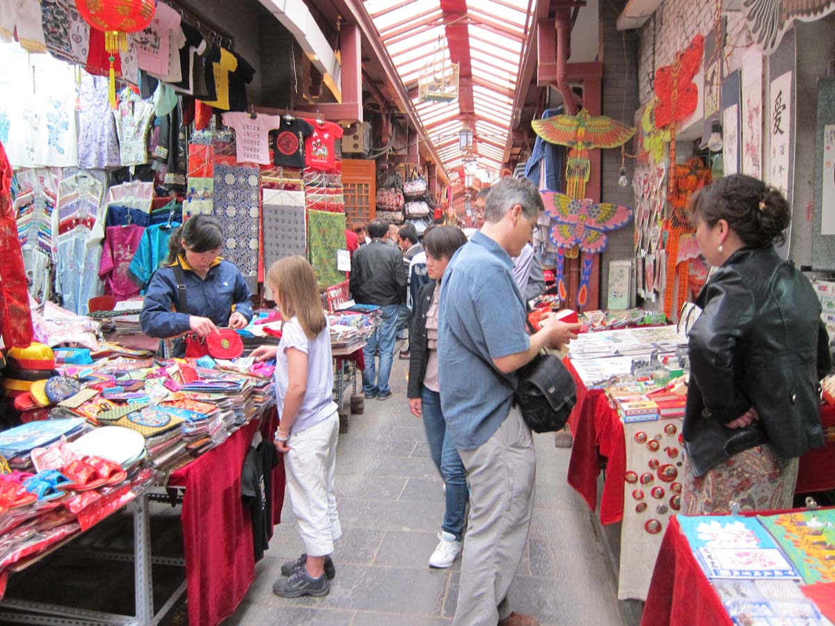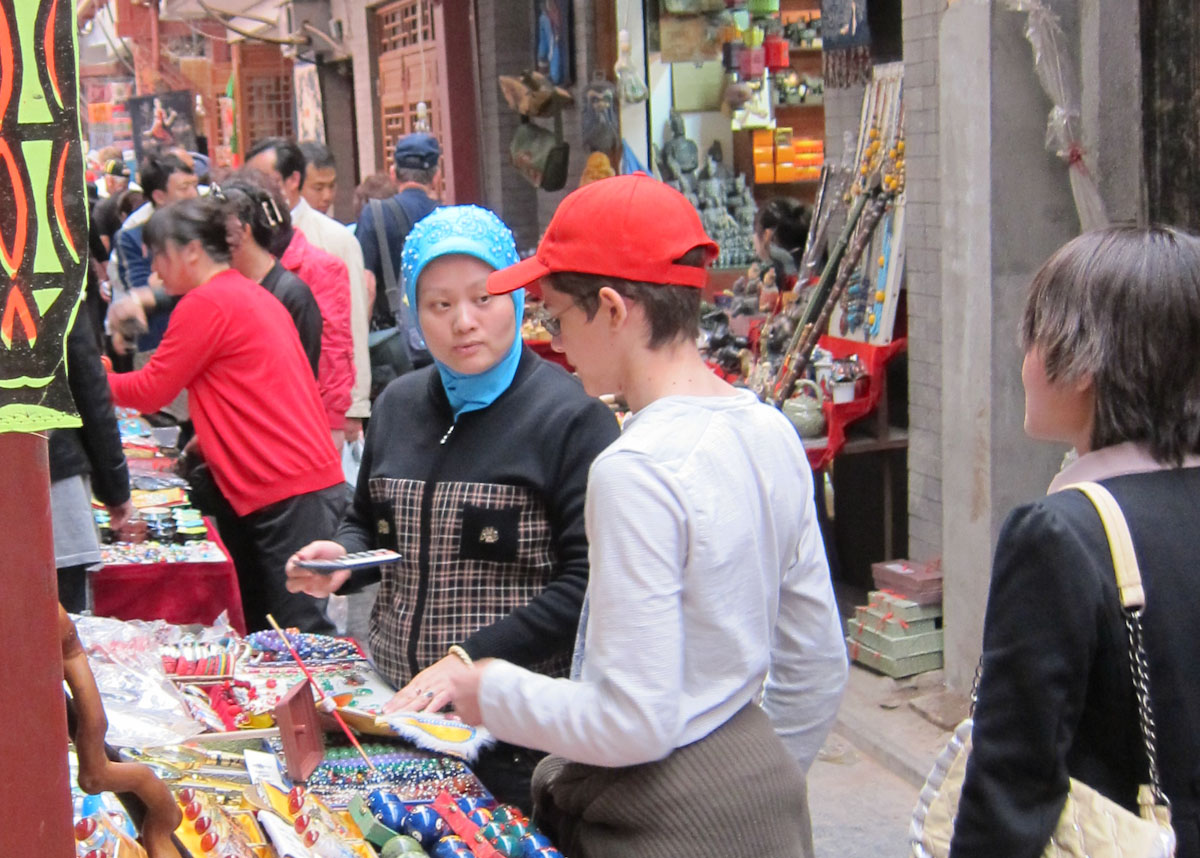 There are lots of jades in China but some of them are simply green glass and they all have varying quality levels. We wanted a small jade circle – the symbol of Heaven – and spotted a nice display case. “Could I see the the jade circles?” The lady pulls out every jade circle EXCEPT ONE to show us. When we point to the remaining one that looks so nice she says “Oh… THAT is a special one.” She is very reluctant to sell it, except at a much higher price.