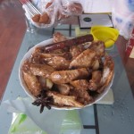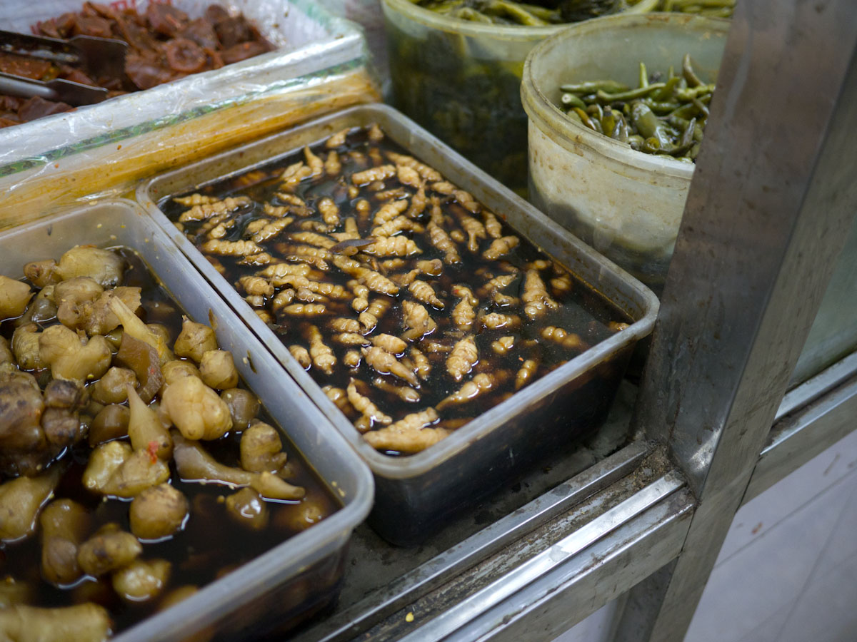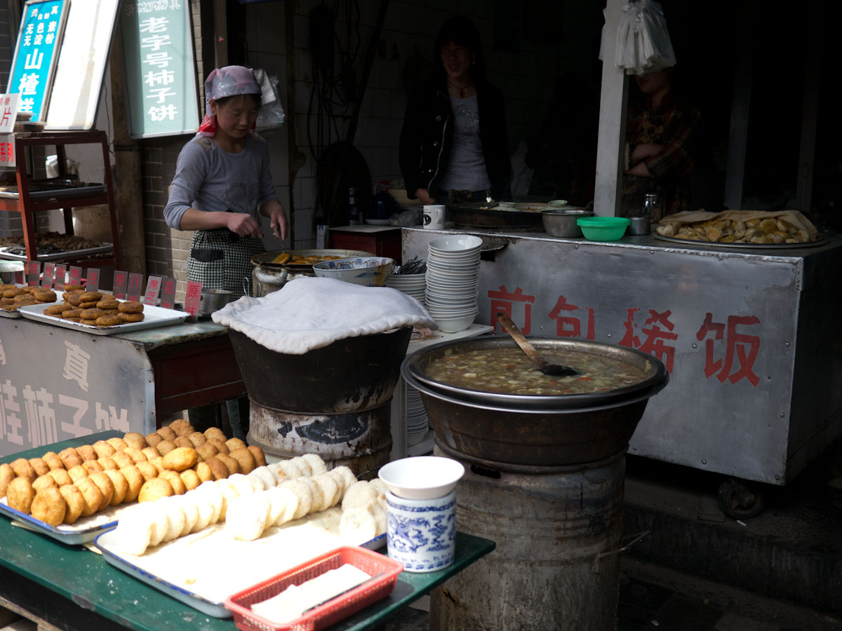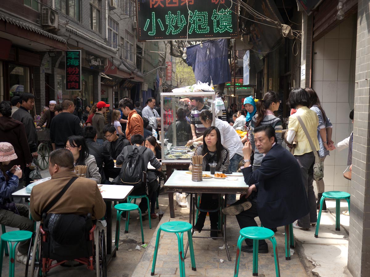 There is no standing on ceremony here. When the food comes first for one person at a table, they start to eat without waiting. If someone has to scratch or spit, they do it in full view. If there is no bench, they squat down and sit on their heels. If they want to sell something, they just spread out a blanket on the sidewalk.