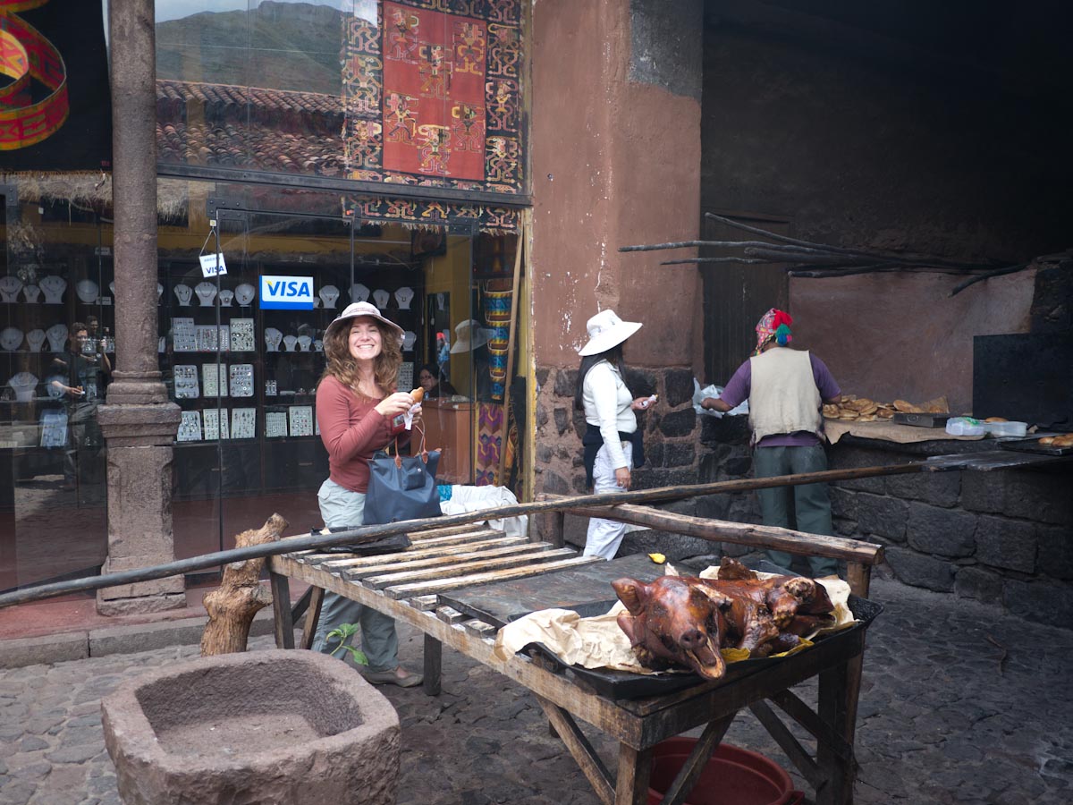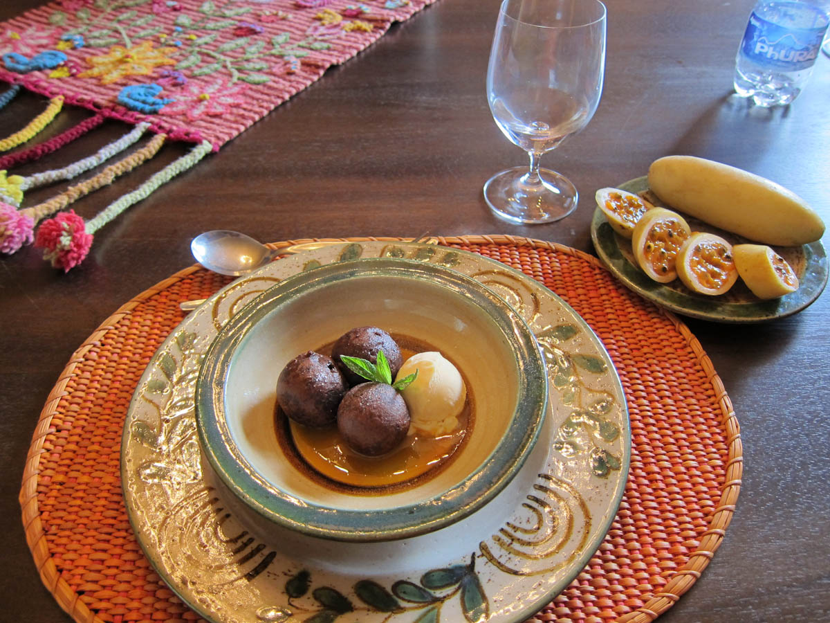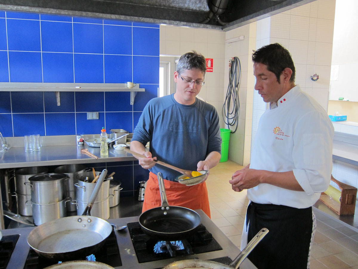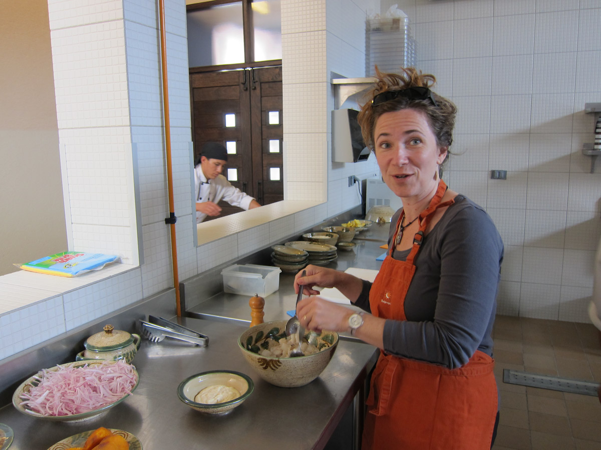 Culinary highlights for us included several dishes we prepared at a cooking class at Sol Y Luna in the Sacred Valley. There we made ceviche, a chilled soup made with sea bass cured in lime juice and served with avocado and red chilies, sautéed alpaca tenderloin (!), quinoa soup, and an incredible dessert of tempura truffles. Sweet and savory tamales, roasted pig and rice pudding were other not-healthy-but-so-tasty favorites.